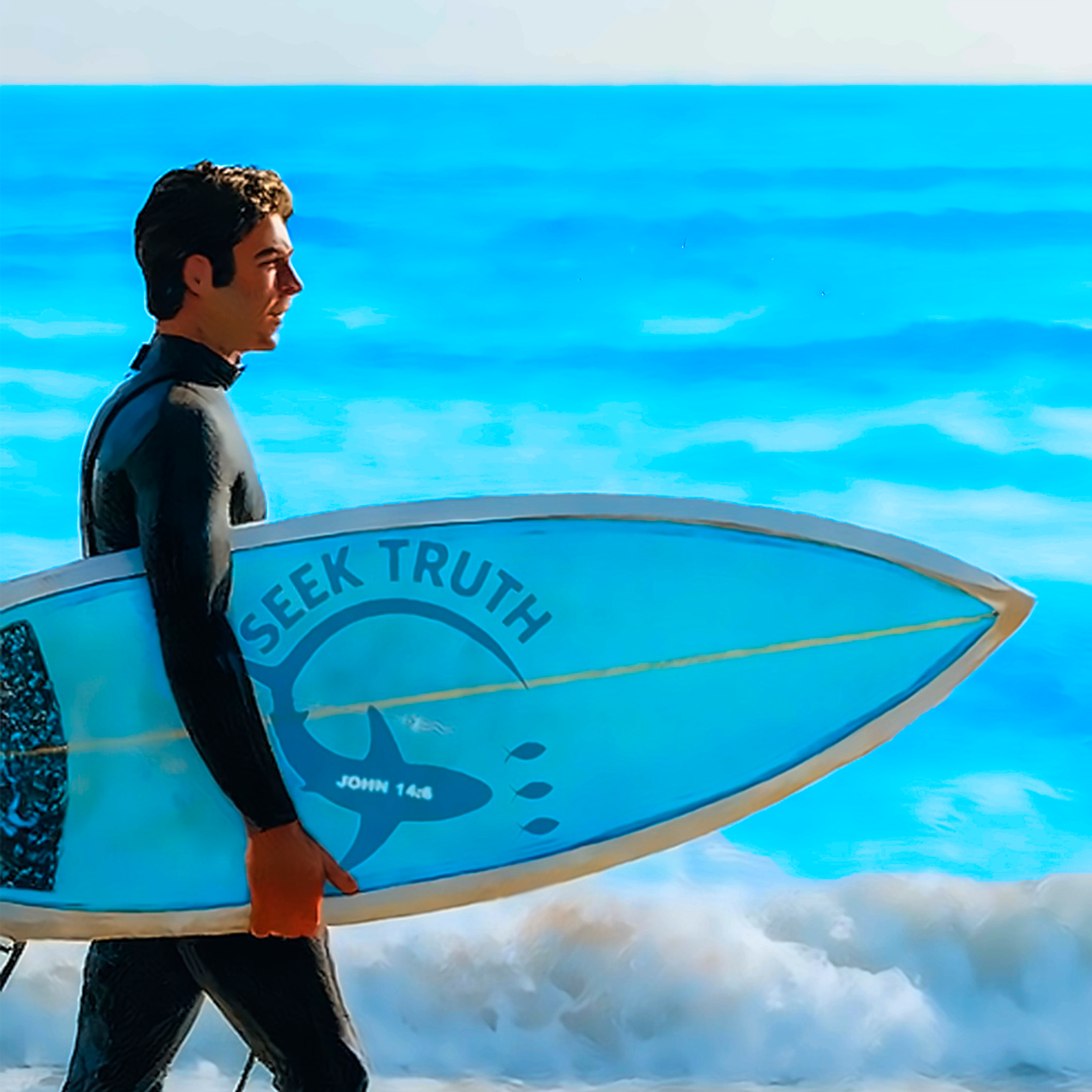 (03) Seek Truth Psalm 93:4 Surfboard Christian T-Shirt Comfort Colors Short Sleeve Tee